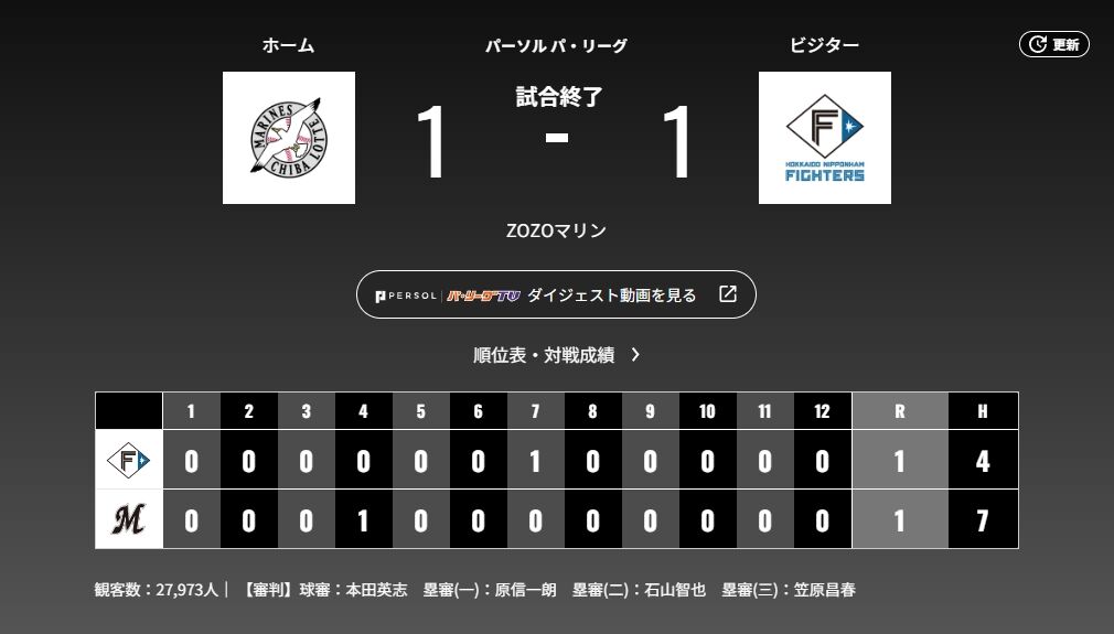 5月17日 ロッテ1-1日本ハム 先発佐々木が8回12奪三振の快投、延長突入も決着つかず2試合連続の引き分け スポンサーリンク 千葉ロッテマリーンズ 2024/05/17 23:03 5月17日 ロッテ1-1日本ハム 先発佐々木が8回12奪三振の快投、延長突入も決着つかず2試合連続の引き分け 664: どうですか解説の名無しさん 2024/05/17(金) 22:02:32.57 ID:HwvDlWva0 ワケタデー ※GIF画像 続きを読む