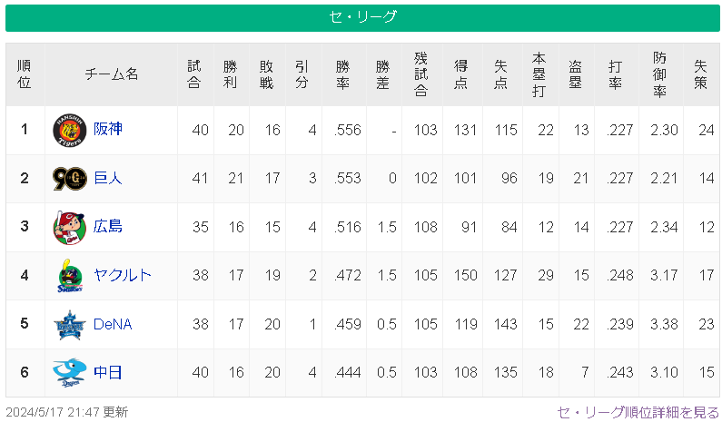 【5/17】神巨=-広-/-ヤ-中-横【順位スレ】 スポンサーリンク 中日ドラゴンズ 2024/05/18 00:43 【5/17】神巨=-広-/-ヤ-中-横【順位スレ】 (出典 ●●●●中日●●●横浜●●東京 広島○読売○○○○阪神○○○○) 1 それでも動く名無し 警備員[Lv.24(前21)][苗] :2024/05/17(金) 21:27:57.27 ID:QyTRN6I30 阪神○○○○ 読売○○○○ 広島○ 東京●● 横浜●●● 中日●●●● 福岡○○○○○○○○○○○○○○○ 日公○○○○○○○ 千葉● 楽天●●● 檻牛●●●●● 西武●●●●●●●●●●●● (出典 ●●●●中日●●●横浜●●東京 広島○読売○○○○阪神○○○○) 続きを読む