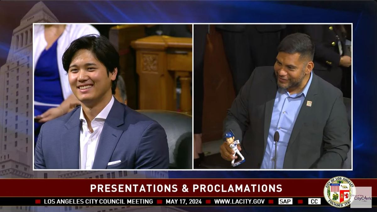 【ロサンゼルス共同】米大リーグで大谷翔平(29)が所属するドジャースの本拠地ロサンゼルス市が、5月17日を「大谷翔平の日」に制定した。同日、球団が発表した。球団によると、大谷は午前中にロサンゼルス市庁舎を訪れて表彰を受け、「この日を僕の日に認定してくださり、ありがとうございます。球団やファンの方々にも感謝したい」とコメントした。