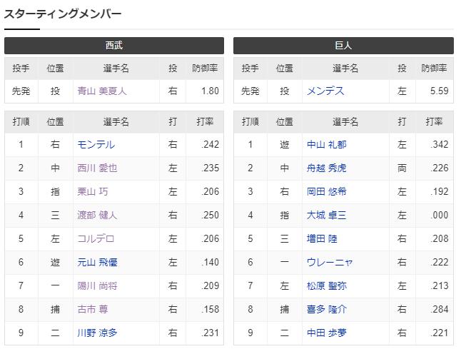 【試合実況】西武2軍スタメン 先発:青山(2024.5.18)