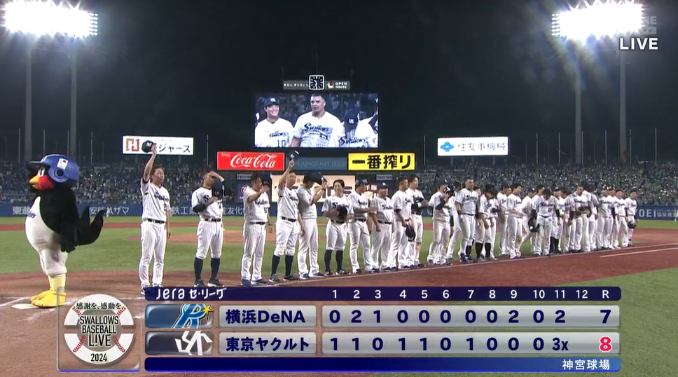 【試合結果】ヤクルト8×‐7横浜DeNA オスナサヨナラ打で延長11回の激闘を制す!赤羽1号でヒロイン! スポンサーリンク 東京ヤクルトスワローズ 2024/07/22 01:44 【試合結果】ヤクルト8×‐7横浜DeNA オスナサヨナラ打で延長11回の激闘を制す!赤羽1号でヒロイン! 314: ヤ8-7横(11回裏) 24/07/21(日) 22:32:55 ID:WcZI よっしゃああ 続きを読む