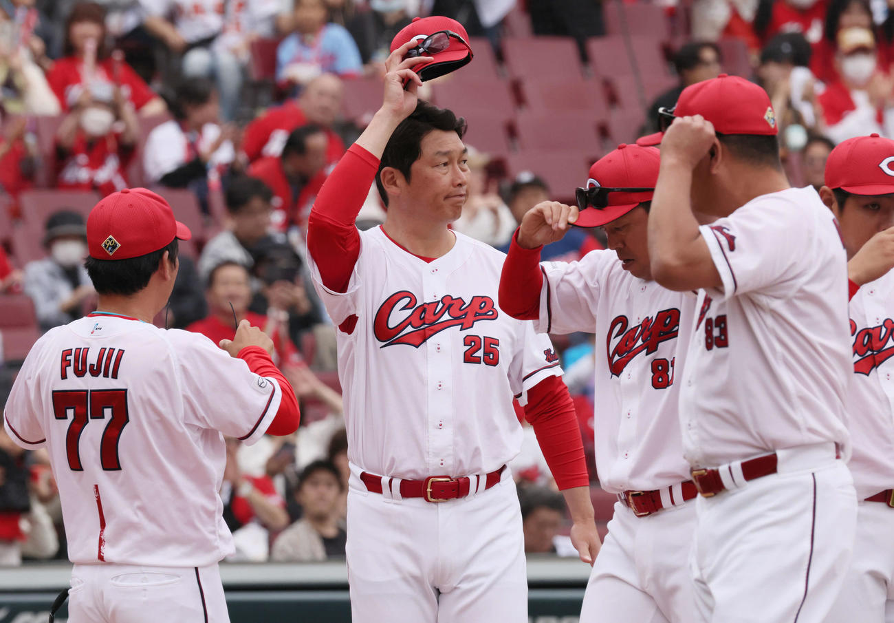 新井監督「週末マツダでのゲームでなかなかいい試合を届けられてなかったので、きのうも今日も超満員のファンの前でいい試合を見せることができて、すごくうれしく思います。また明日しっかり休んでいい準備をして明後日の試合に臨んでいきたいと思います」