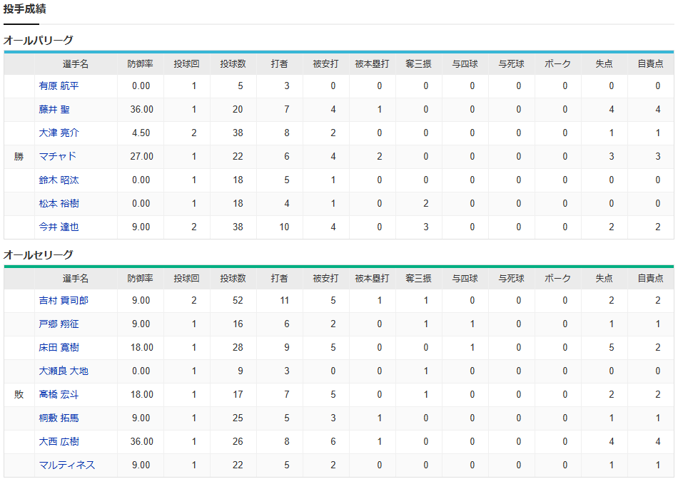 【球宴】カープ坂倉グランドスラムで敢闘賞!小園2塁打!栗林代走!大瀬良1回0封!床田1回5失点。計42安打6発の超乱打戦!【全セ10-16全パ/試合結果】