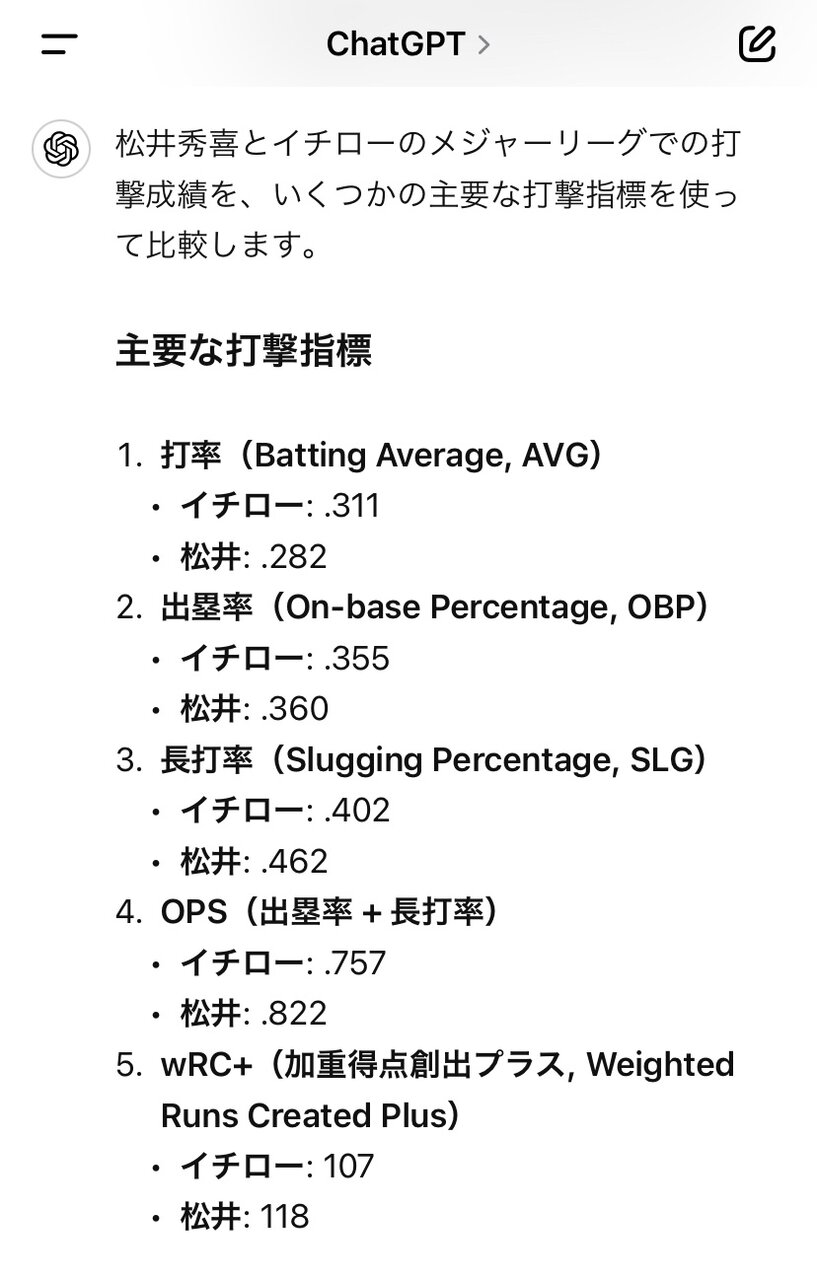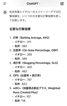 【超朗報】イチローvs松井秀喜の打撃論争、ChatGPTのおかげで遂に決着が付いた模様!!!!!! スポンサーリンク MLB 2024/08/08 02:24 【超朗報】イチローvs松井秀喜の打撃論争、ChatGPTのおかげで遂に決着が付いた模様!!!!!! 1: 2024/08/07(水) 03:49:41.92 ID:OX5l2c/70 続きを読む