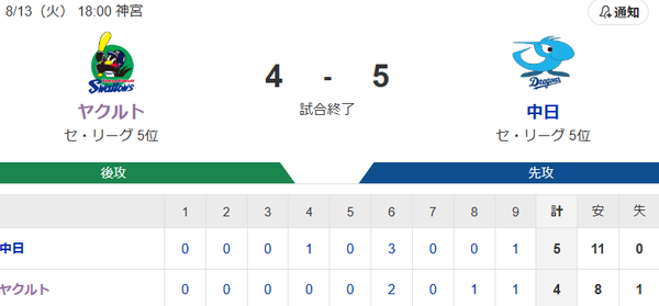 【試合結果】ヤクルト4-5中日 村上タイムリー2本!増田1号も接戦落とす スポンサーリンク 東京ヤクルトスワローズ 2024/08/14 01:53 【試合結果】ヤクルト4-5中日 村上タイムリー2本!増田1号も接戦落とす 488: ヤ4-5中(9回裏) 24/08/13(火) 22:05:37 ID:Yn8D 9回の流れを見てたヤクルトファンには同情する 続きを読む