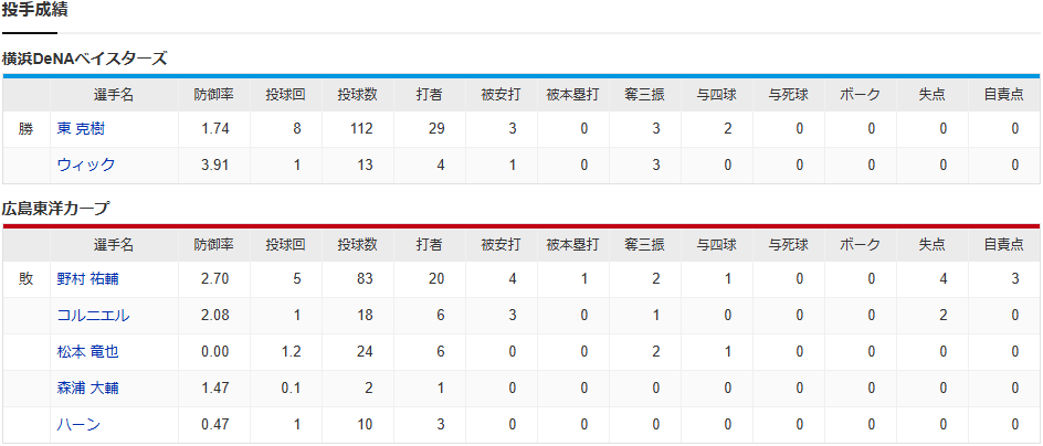 カープ、リーグ最多18度目の完封負け。中村奨成2戦連続マルチ!松本森浦ハーン0封リレーも野村5回4失点。コル1回2失点。チャンスで代打松山も不発【広島0-6DeNA/試合結果】