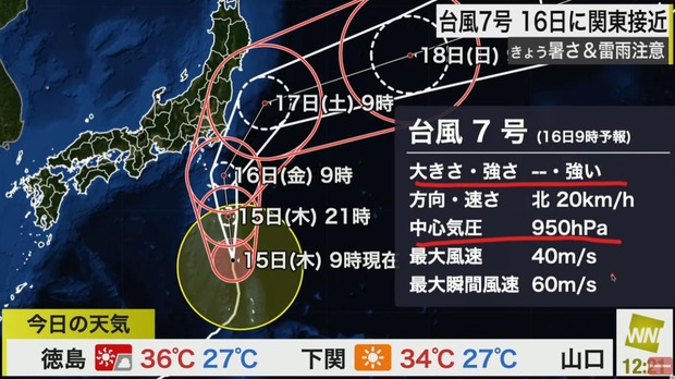 台風7号、逸れそう? スポンサーリンク 埼玉西武ライオンズ 2024/08/15 16:03 台風7号、逸れそう? 1: 名無しさん 2024/08/15(木) 03:59:44.17 【台風情報】台風7号(アンピル)は8月15日(木)9時に強い勢力となりました。関東に接近する明日16日(金)も強い勢力を維持する見込みで、上陸しなくても暴風や大雨への警戒が必要です。https://t.co/VypAQ1UoYk pic.twitter.com/Ztz78JSKFS — ウェザーニュース (@wni_jp) August 15, 2024 はい 続きを読む