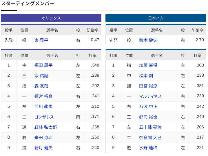 【オリックスvs.日本ハム 7回戦 】1(指)加藤豪将 2(中)松本剛 3(捕)田宮裕涼 4(一)マルティネス