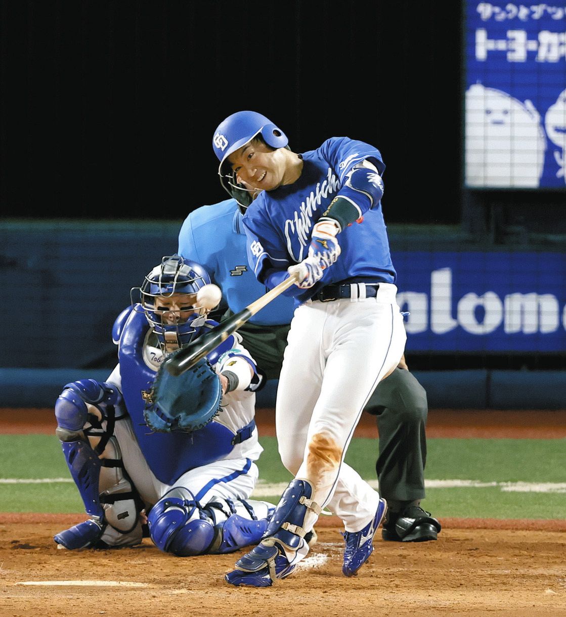 1点を追う3回。1死から1番・岡林が左翼線を破る二塁打で出塁すると、打席には「2番・二塁」でスタメン出場の山本泰寛内野手。2ストライクと追い込まれてからファウルで粘って迎えた9球目。DeNA先発・大貫が投じた内角141キロにうまく腕をたたんで対応すると打球は左翼手と中堅手の間に落ちる同点の適時打となった。