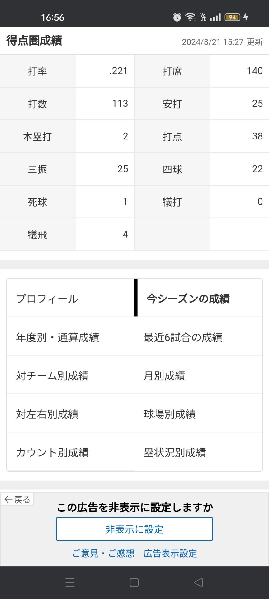 【悲報】大谷翔平さん、得点圏打率.221(113-25)