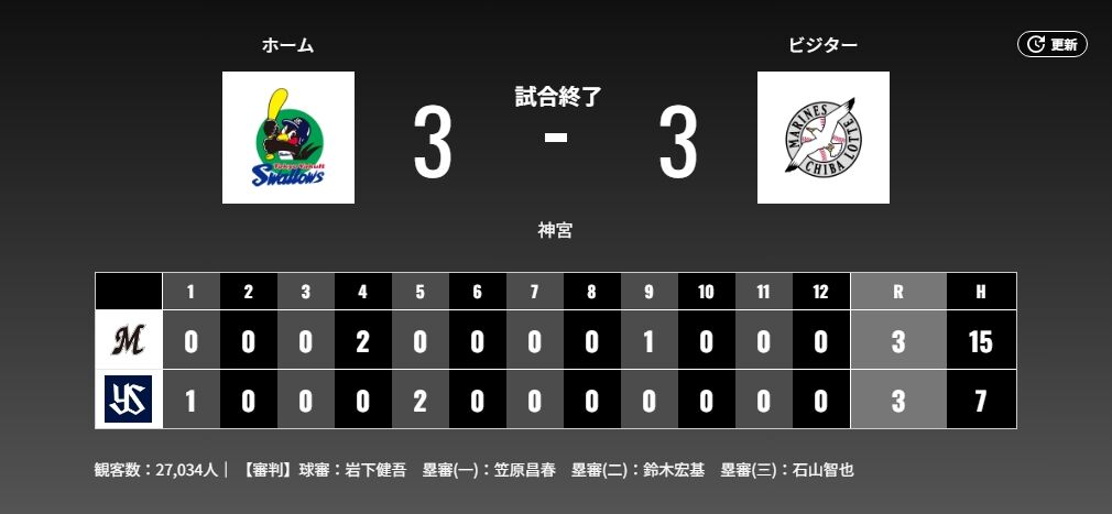 5月29日 ヤクルト3-3ロッテ 1点ビハインドの9回にポランコが同点打で延長戦へ、両軍チャンス作るも決着つかず引き分け スポンサーリンク 千葉ロッテマリーンズ 2024/05/30 01:24 5月29日 ヤクルト3-3ロッテ 1点ビハインドの9回にポランコが同点打で延長戦へ、両軍チャンス作るも決着つかず引き分け 571: どうですか解説の名無しさん 2024/05/29(水) 22:10:25.75 ID:cZ4cUHrB0 しょーごちゃん!!!!!!ないす!!! ※GIF画像 続きを読む