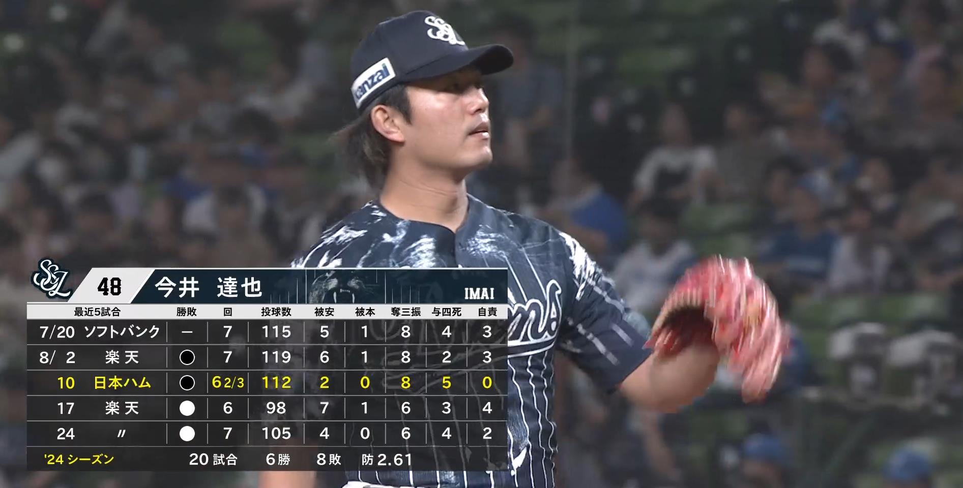 「今井が報われたよかった」感情爆発8回1失点で7勝目