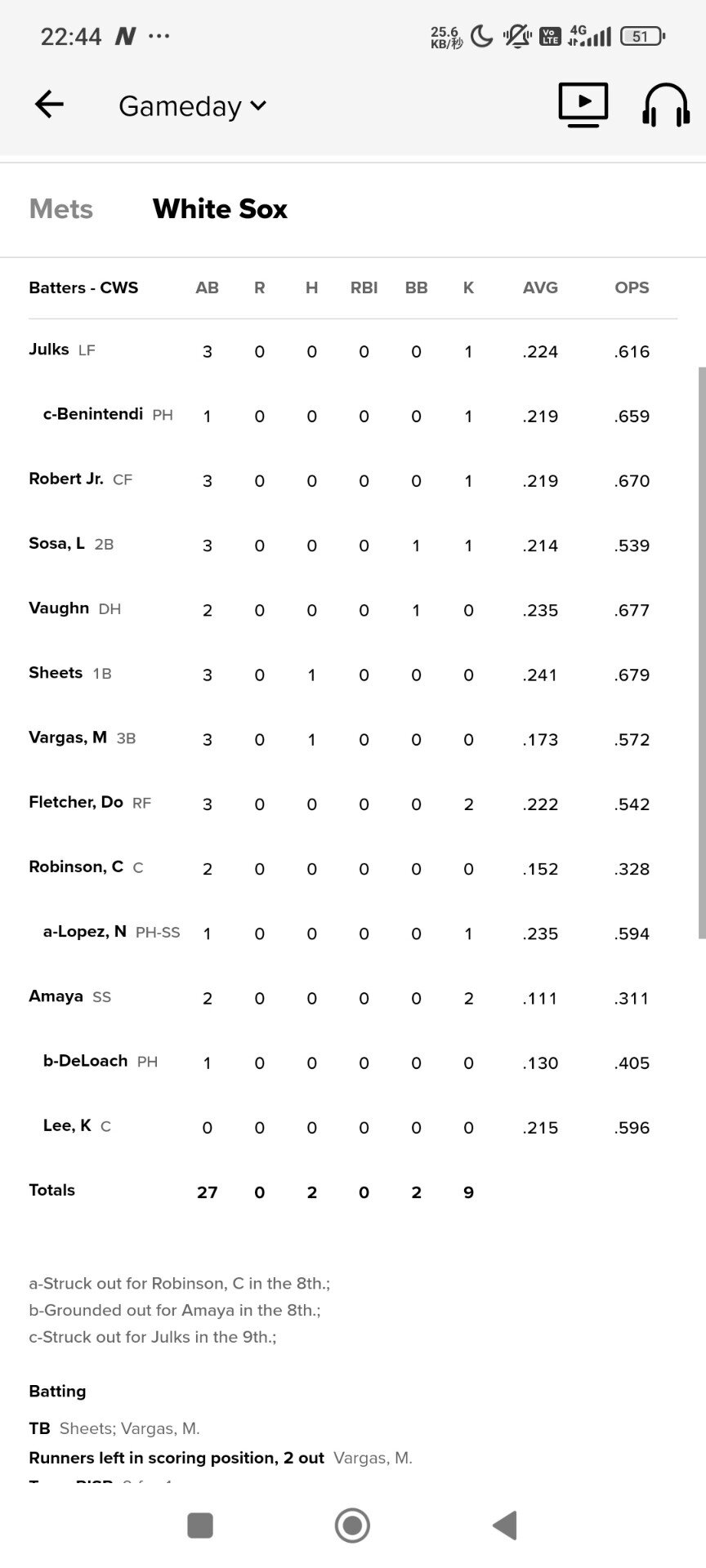 ホワイトソックス 12連敗で31勝109敗 勝率.221
