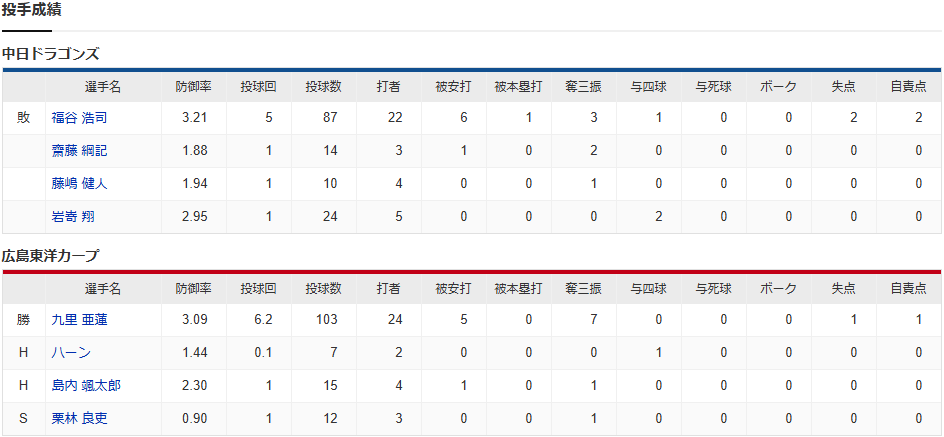 広島がロースコアの接戦を制して連敗を4で止めた。2点を守り抜き、3年連続本拠地でのシーズン勝ち越しが決定した。