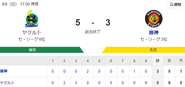 【試合結果】ヤクルト5-3阪神 高梨6回2失点で今季初勝利!澤井プロ初ホームラン! スポンサーリンク 東京ヤクルトスワローズ 2024/09/08 23:36 【試合結果】ヤクルト5-3阪神 高梨6回2失点で今季初勝利!澤井プロ初ホームラン! 450: ヤ5-3神(9回表) 24/09/08(日) 19:49:33 ID:TeGc なにもなく終わってほんとよかったちなヤク 続きを読む