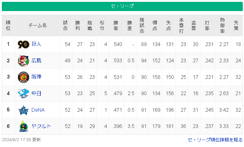 【6/2】巨-広神=-/=中-横-===ヤ【順位スレ】 スポンサーリンク 中日ドラゴンズ 2024/06/02 22:04 【6/2】巨-広神=-/=中-横-===ヤ【順位スレ】 (出典 ●●●●●●●●●●東京●●●横浜●●中日 阪神○○広島○○○読売○○○○) 1 それでも動く名無し 警備員[Lv.7][新芽] :2024/06/02(日) 17:46:05.06 ID:tI/+rB8+d 読売○○○○ 広島○○○ 阪神○○○ 中日●● 横浜●●● 東京●●●●●●●●●● 福岡○○○○○○○○○○○○○○○○○○ 千葉○○○○○○○○ 日公○○○○○○○○ 楽天●●●●●● 檻牛●●●●●●●● 西武●●●●●●●●●●●●●●● (出典 ●●●●●●●●●●東京●●●横浜●●中日 阪神○○広島○○○読売○○○○) 続きを読む