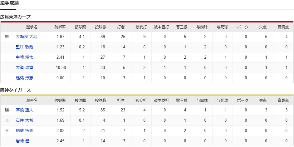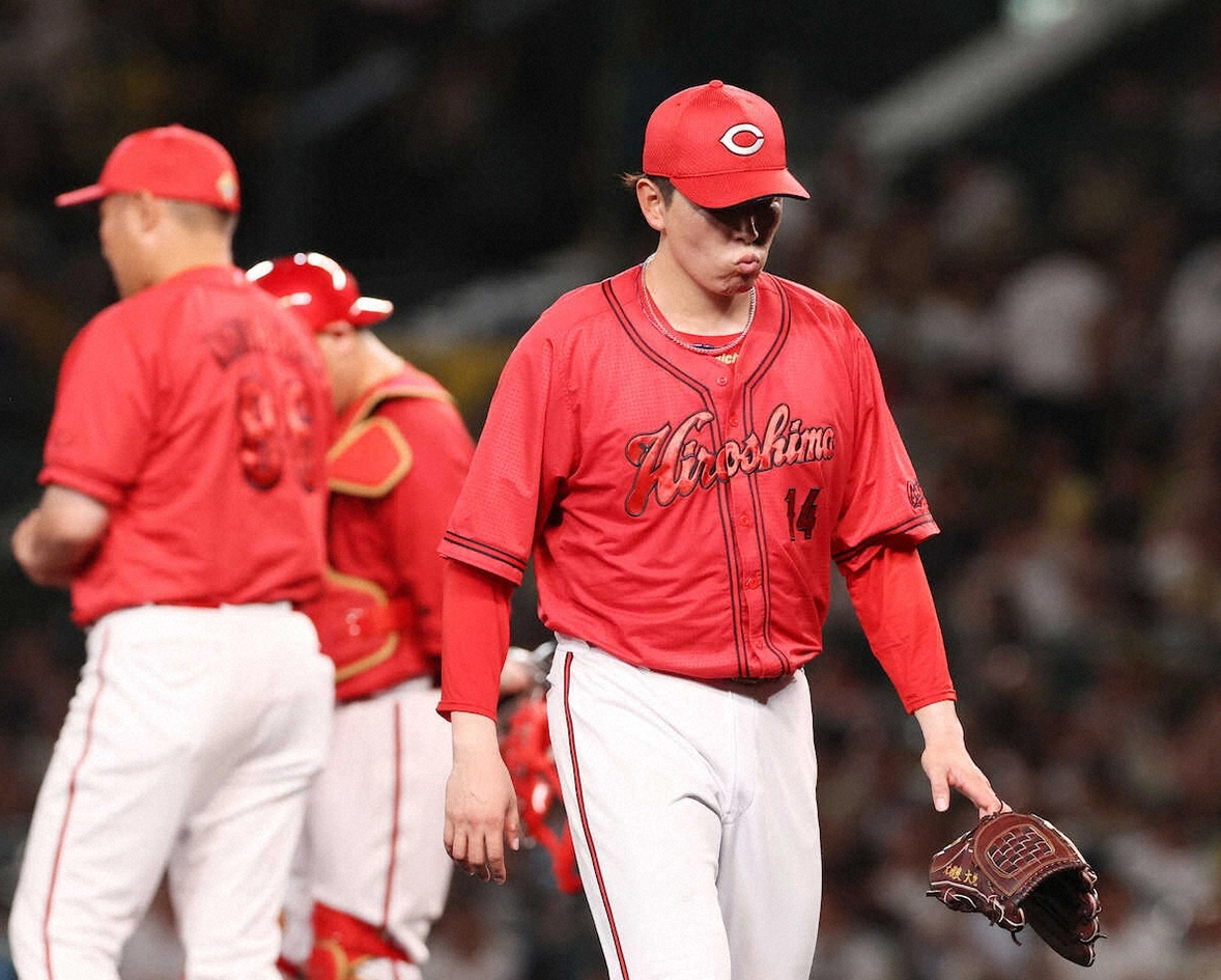 カープ"泥沼"5連敗で3位転落。堂林反撃打!秋山2安打2得点!遠藤好リリーフも大瀬良4.1回5失点炎上。小園&矢野ミス連発。投壊&守乱で連敗脱出ならず【広島3-7阪神/試合結果】