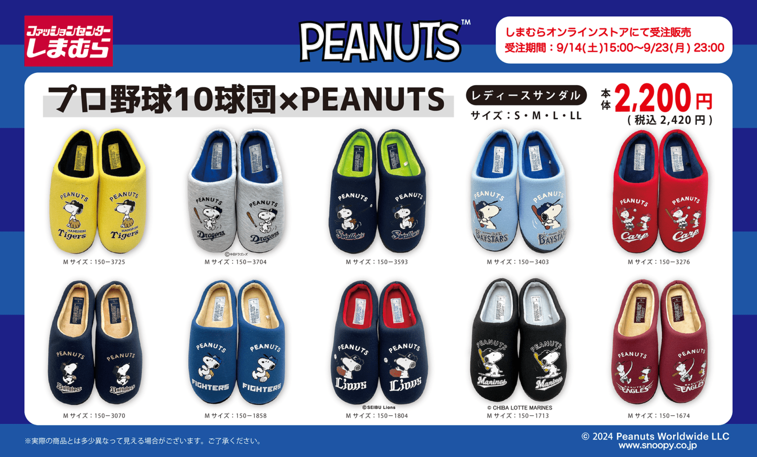 受注期間は2024年9月23日(振休)23時まで。この機会を逃さず、お気に入りチームのスヌーピーサンダルをゲットしよう!