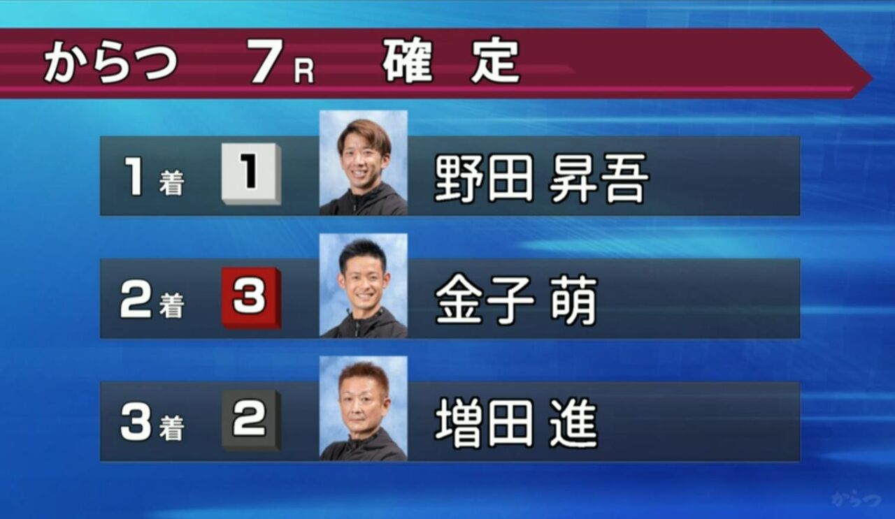 7Rは131期の#野田昇吾 選手(埼玉)がイン逃げで通算3勝目を達成✨「イン戦10回目で初めて逃げました」と笑顔の野田選手☺️福岡県糸島市出身の野田選手は元プロ野球選手(西武ライオンズ)で佐賀でも試合で投げたことがあるそうです⚾️#ボートレースからつ pic.twitter.com/mGWX78mIus