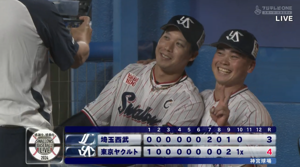 【試合結果】ヤクルト4×-3西武 丸山和郁のバントでサヨナラ勝利!山田が土壇場同点タイムリー! スポンサーリンク 東京ヤクルトスワローズ 2024/06/04 21:53 【試合結果】ヤクルト4×-3西武 丸山和郁のバントでサヨナラ勝利!山田が土壇場同点タイムリー! 834: ヤ3-3西(10回裏) 24/06/04(火) 21:20:11 ID:acwP すわほー 続きを読む