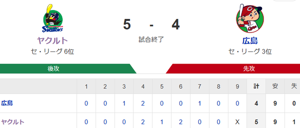 【試合結果】ヤクル5-4広島 村上28号2ラン!大西9勝目!小澤7セーブ! スポンサーリンク 東京ヤクルトスワローズ 2024/09/19 00:13 【試合結果】ヤクル5-4広島 村上28号2ラン!大西9勝目!小澤7セーブ! 248: ヤ5-4広(9回表) 24/09/18(水) 21:19:06 ID:pJq8 これで5位浮上か? 続きを読む