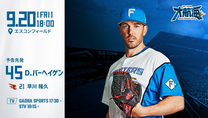 バーヘイゲン 9月20日の楽天戦 予告先発! 18:00~