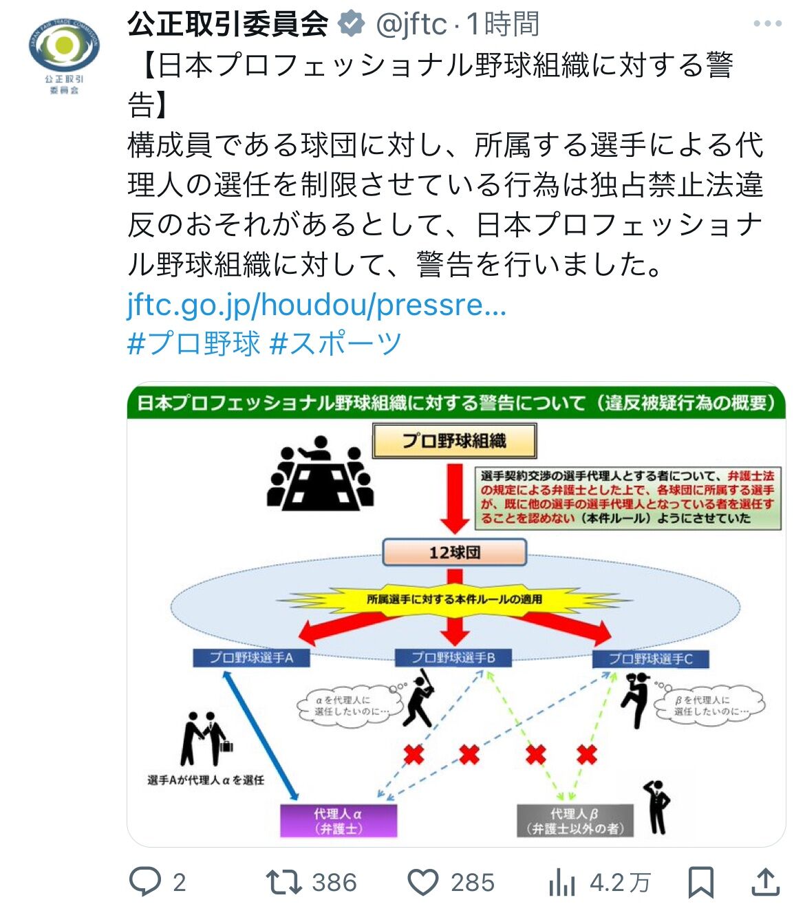 NPB、公正取引委員会から独禁法違反の恐れありと警告を受ける スポンサーリンク 北海道日本ハムファイターズ 2024/09/20 01:44 NPB、公正取引委員会から独禁法違反の恐れありと警告を受ける 1: 名無しさん 2024/09/19(木) 16:56:12.17 ID:xBWbIAw80 アカン…… 3: 名無しさん 2024/09/19(木) 16:59:01.77 ID:kVF7s3E50 お気持ち表明 続きを読む