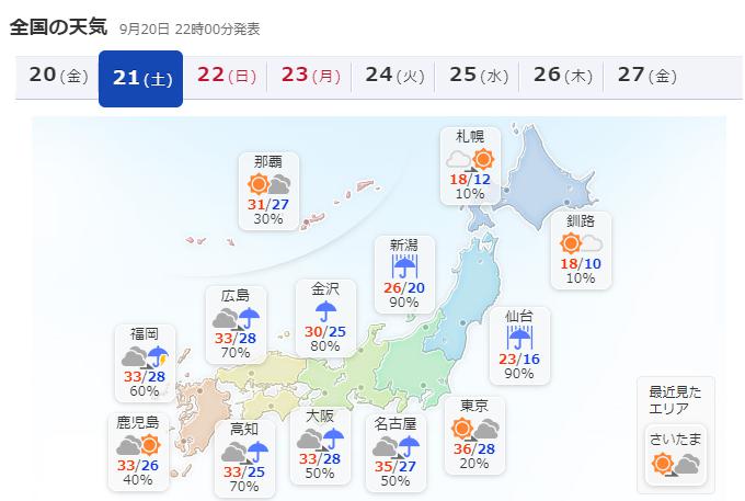 東京最高気温 20日36℃ 21日36℃ 22日33℃ スポンサーリンク 埼玉西武ライオンズ 2024/09/21 02:43 東京最高気温 20日36℃ 21日36℃ 22日33℃ 1: 名無しさん 2024/09/20(金) 07:07:57.64 8月かな? 5: 名無しさん 2024/09/20(金) 07:09:38.51 秋可哀相 続きを読む