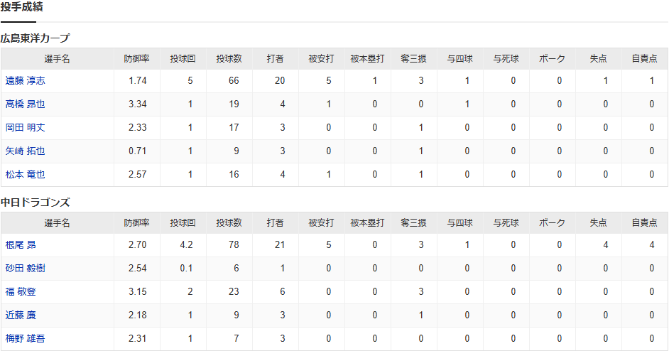 カープ松山、中日根尾から決勝2点ツーベース!中村奨成ダメ押し3塁打!遠藤5回1失点!高橋-岡田-矢崎-松本0封リレー!【広島4-1中日/試合結果】