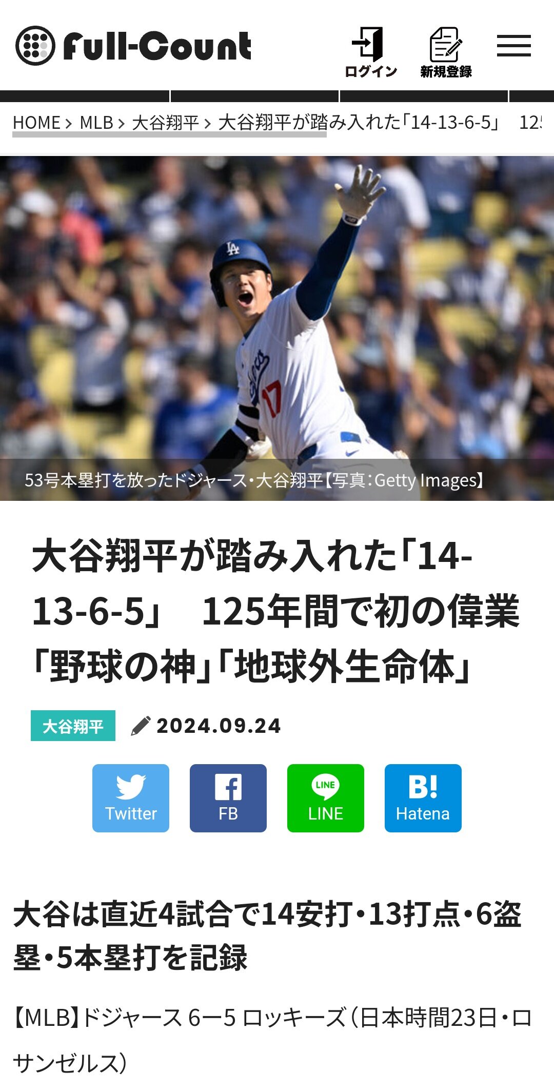 大谷翔平ついに14-13-6-5達成 近代野球史125年間で史上初