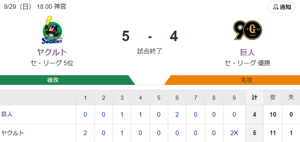 【試合結果】ヤクルト5×-4巨人 長岡サヨナラ打で逆転勝利!サンタナ16号!小澤6勝! スポンサーリンク 東京ヤクルトスワローズ 2024/09/30 02:13 【試合結果】ヤクルト5×-4巨人 長岡サヨナラ打で逆転勝利!サンタナ16号!小澤6勝! 147: ヤ4-4巨(9回裏)▼副 24/09/29(日) 21:06:37 ID:FscR サヨナラだああああああああああああああああああああああああああああああああああああああああああああああああ 151: ヤ4-4巨(9回裏) 24/09/29(日) 21:06:41 ID:MNn0 きたあああああ 続きを読む
