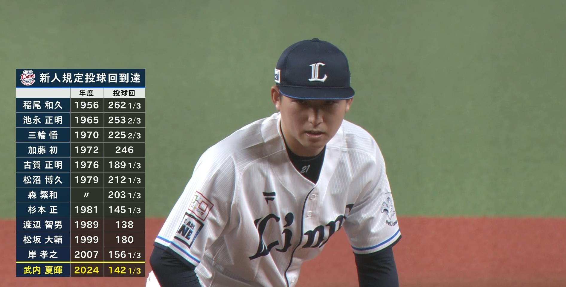 武内夏暉が規定イニング到達!西武の新人では17年ぶりの快挙
