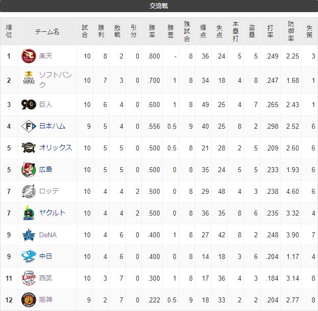 交流戦順位表(6月7日)ロッテがノーノー献上、楽天4連勝で首位キープ スポンサーリンク 千葉ロッテマリーンズ 2024/06/08 10:43 交流戦順位表(6月7日)ロッテがノーノー献上、楽天4連勝で首位キープ 1: 名無し 24/06/07(金) 22:46:57 ID:Z3Y0 パリーグ勝ち越し 続きを読む