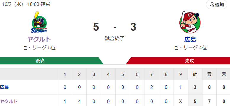 【試合結果】ヤクルト5-3広島 青木引退試合で2安打の活躍!高橋6回無失点で8勝! スポンサーリンク 東京ヤクルトスワローズ 2024/10/02 23:53 【試合結果】ヤクルト5-3広島 青木引退試合で2安打の活躍!高橋6回無失点で8勝! 103: ヤ5-3広(9回表) 24/10/02(水) 20:33:49 ID:EC2d 青木さんありがとう!!!!!! 続きを読む