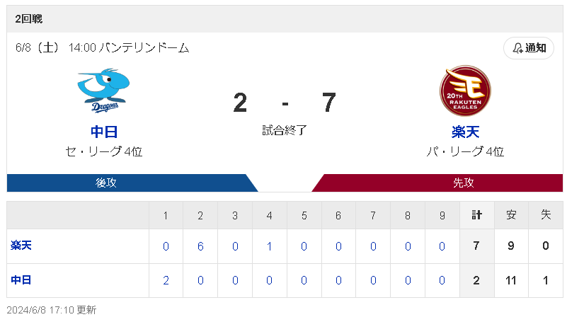 試合結果:nikkansports.com/yahooスポナビ野球
