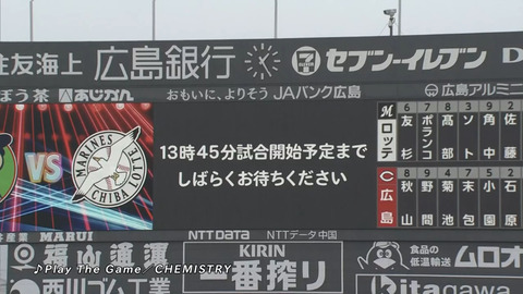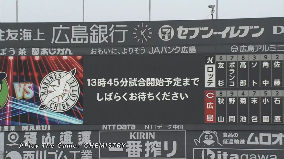 ロッテvs広島、降雨のため試合開始が15分延期…