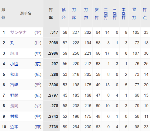 ついにセ・リーグ規定打席3割打者がサンタナ 317 ひとりに スポンサーリンク 東京ヤクルトスワローズ 2024/06/10 03:33 ついにセ・リーグ規定打席3割打者がサンタナ 317 ひとりに 1: それでも動く名無し 警備員[Lv.7][新芽] 2024/06/09(日) 20:51:33.25 ID:C4lG1EVq0 https://baseball.yahoo.co.jp/npb/stats/batter?gameKindId=1&type=avg 飛ばないボールおそろしす 続きを読む