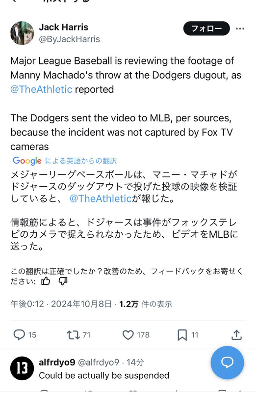 【大谷】マチャド、逝く……ロバーツ目掛けて投げたファストボールがMLBの調査対象に スポンサーリンク MLB 2024/10/09 09:43 【大谷】マチャド、逝く……ロバーツ目掛けて投げたファストボールがMLBの調査対象に 続きを読む