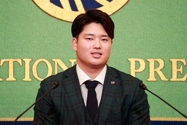 ヤクルトの村上宗隆内野手は14日、都内の日本記者クラブで記者会見を開き、メジャーリーグ挑戦したい意向を明らかにした。「アメリカでプレーする権利を得られるのは数少ない選手。もちろん挑戦したいと思っています」と語った。