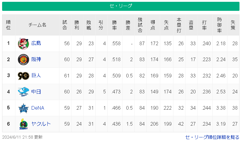 【6/11】広==神-巨-/-=中-横-=ヤ【順位スレ】 スポンサーリンク 中日ドラゴンズ 2024/06/11 22:43 【6/11】広==神-巨-/-=中-横-=ヤ【順位スレ】 (出典 ●●●●●●●東京●●●●横浜●●●中日 読売○阪神○○広島○○○○○○) 1 それでも動く名無し 警備員[Lv.4][新芽] :2024/06/11(火) 21:37:16.11 ID:naY2Vmfe0 広島○○○○○○ 阪神○○ 読売○ 中日●●● 横浜●●●● 東京●●●●●●● 福岡○○○○○○○○○○○○○○○○○○○○○ 千葉○○○○○ 日公○○○○○ 楽天● 檻牛●●● 西武●●●●●●●●●●●●●●●●●●●●●● (出典 ●●●●●●●東京●●●●横浜●●●中日 読売○阪神○○広島○○○○○○) 続きを読む