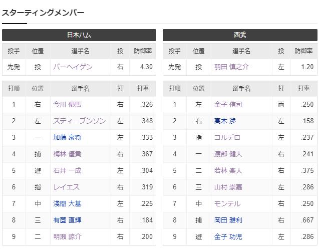 【試合実況】西武2軍スタメン 先発:羽田(2024.6.12)