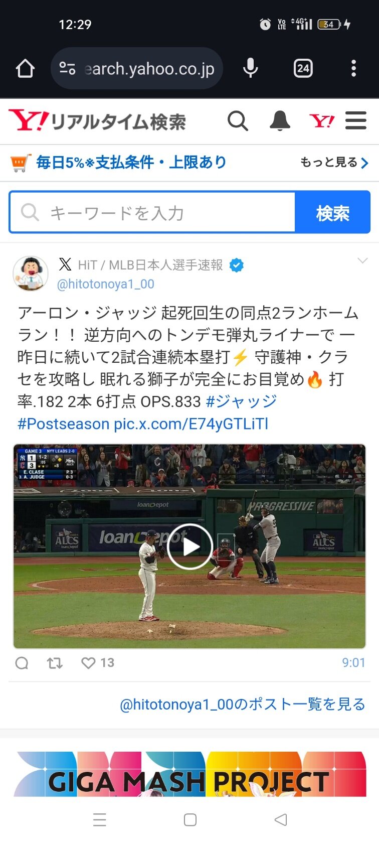 アーロンジャッジさん、8回2点差起死回生の同点ツーランでOPS.833