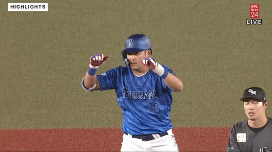 3打数無安打で迎えた4打席目。1ボールから内寄りの速球を軸回転で捉え、二塁ベース上で両拳を掲げた。そこから適時打が続き、一挙6得点。この回は打者10人で4連打を含む6安打を集める猛攻を見せた。三浦監督は「勝負どころで結果を出してくれた」と筒香をたたえた。
