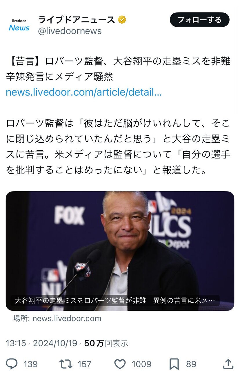 【悲報】大谷翔平、脳が痙攣していたと批判される スポンサーリンク MLB 2024/10/20 11:54 【悲報】大谷翔平、脳が痙攣していたと批判される 1: 2024/10/19(土) 20:44:40.62 ID:EspIiWe4d ええ・・・ 続きを読む