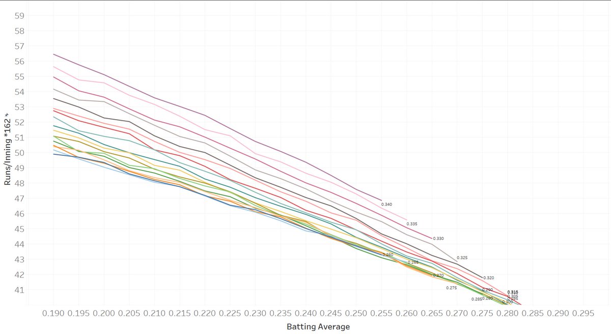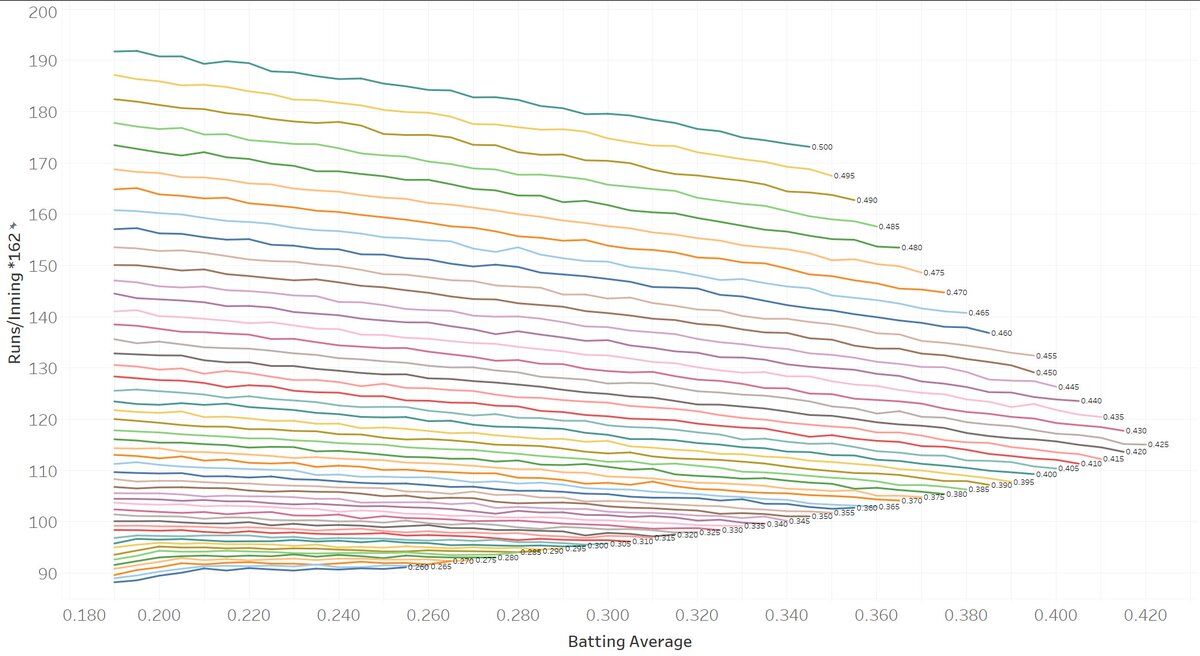 OPSが同じなら打率が低いほど得点が入りやすいという衝撃の結果が出た模様