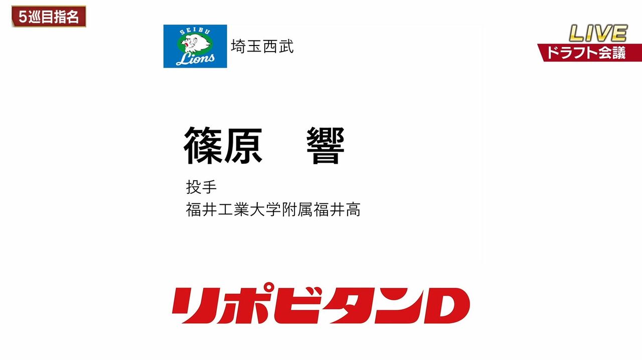 西武ドラ5篠原響「最速149キロ福井のドクターK」