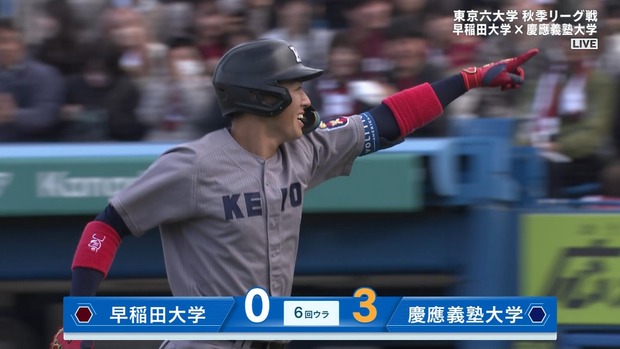 慶大 #清原正吾(④慶應)がレフトスタンドへ今季3号ソロ!📺LIVE配信中📺https://t.co/L7BCo01v6i#big6tv #六大学野球 #早稲田 #慶應