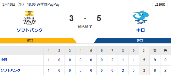 [紹介元] 鷹速@ホークスまとめブログ 【3-5】徐若熙が5回2/3を7奪三振の好投 栗原が二塁打を含むマルチ安打 野村勇が2ランホームランを放つ活躍