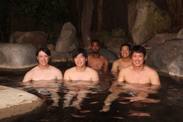 カープ湯布院キャンプ温泉画像2024!森下堂林黒原アドゥワ塹江のイケメン五銃士が肉体美公開