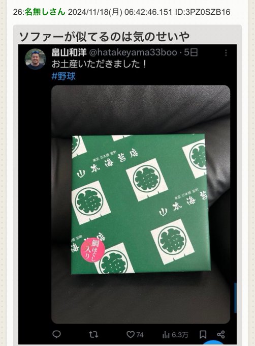 畠山、メルカリとTwitterのソファーが似すぎてて速攻リーチなの草